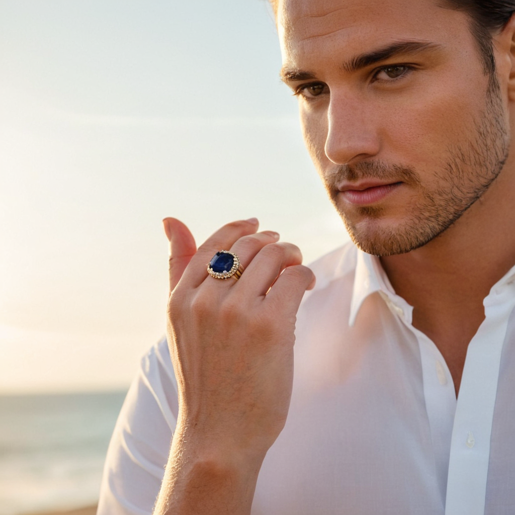 Blue Sapphire Silver Ring for Men | Men's Sapphire Statement Ring